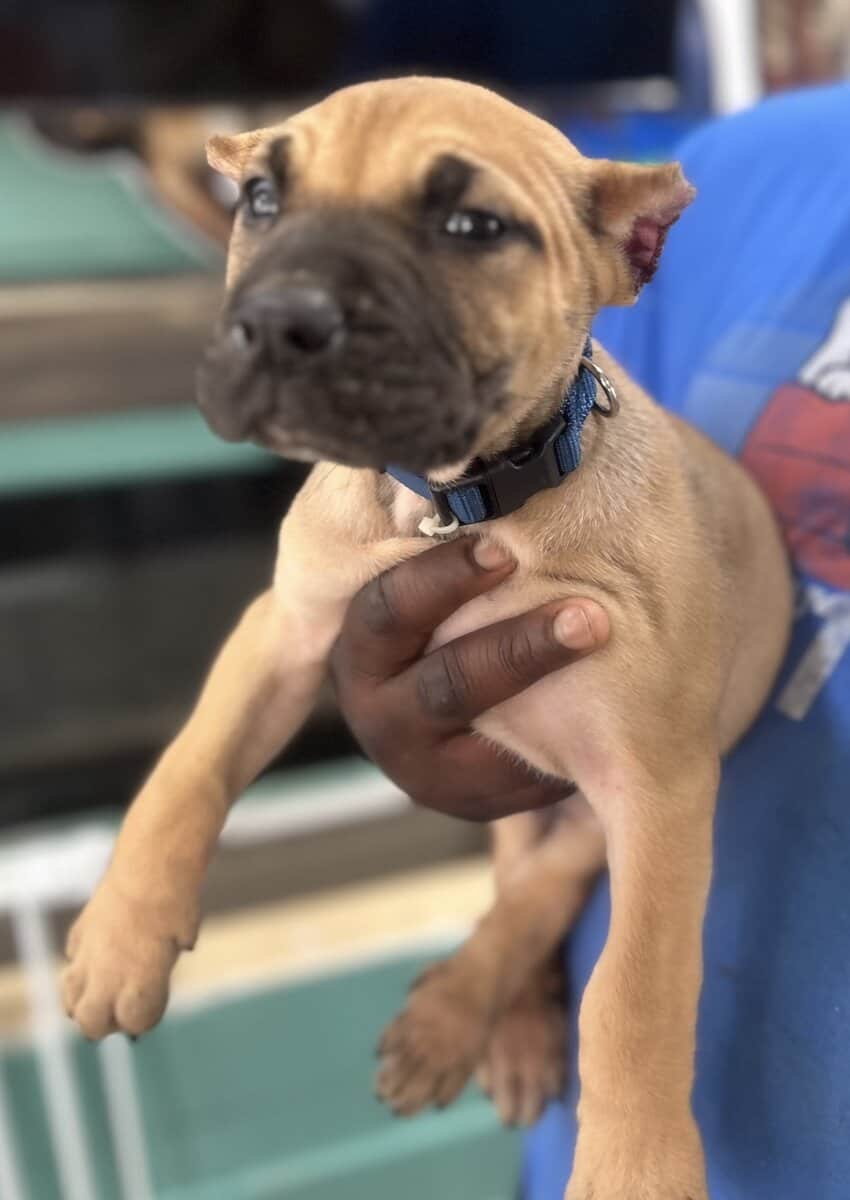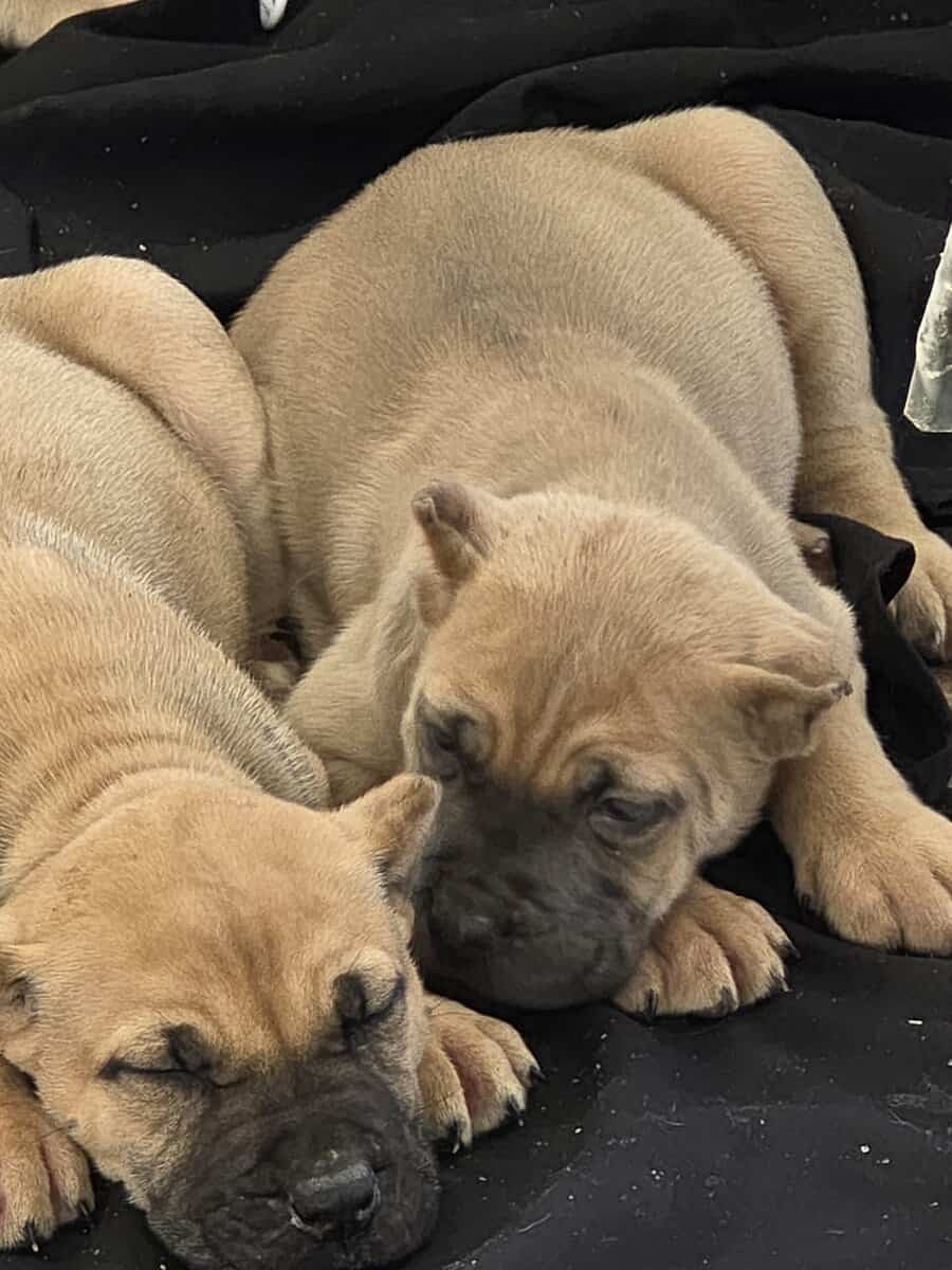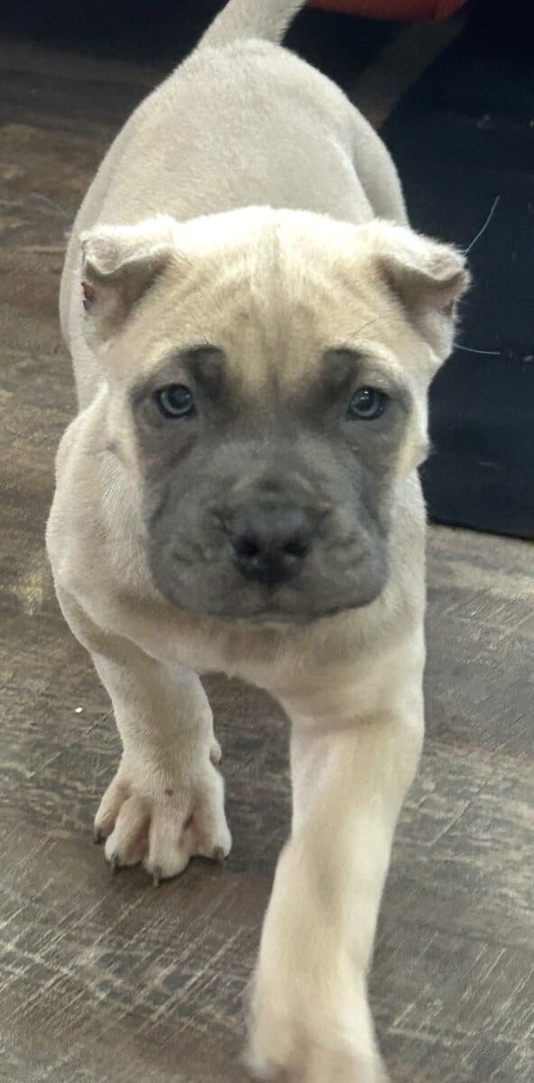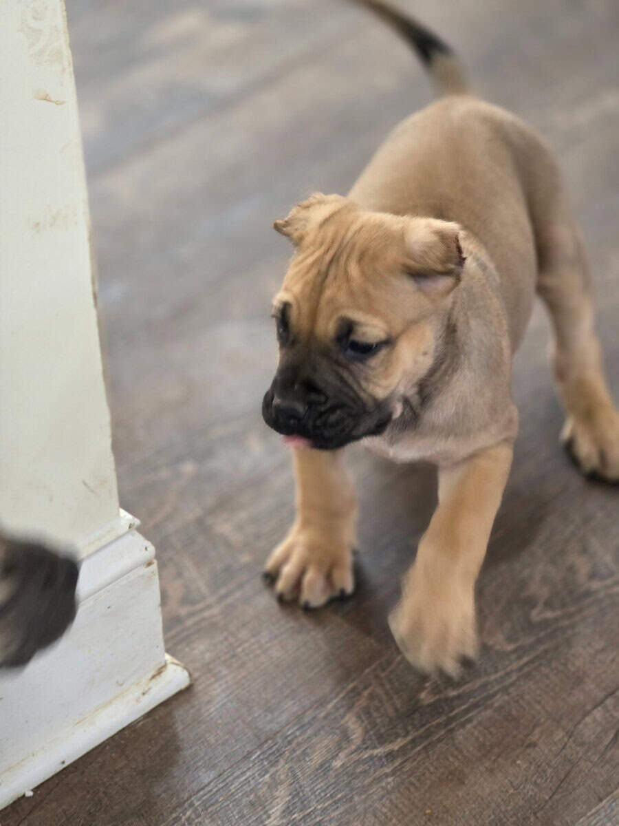 "7-week-old Presa Canario mixed with Cane Corso puppies. These strong, loyal, and protective pups are perfect for families or as guard dogs. Well-socialized and ready to meet their new homes. Don't miss out on adding one of these amazing companions to your family." If you'd like any changes or additional details, let me know!