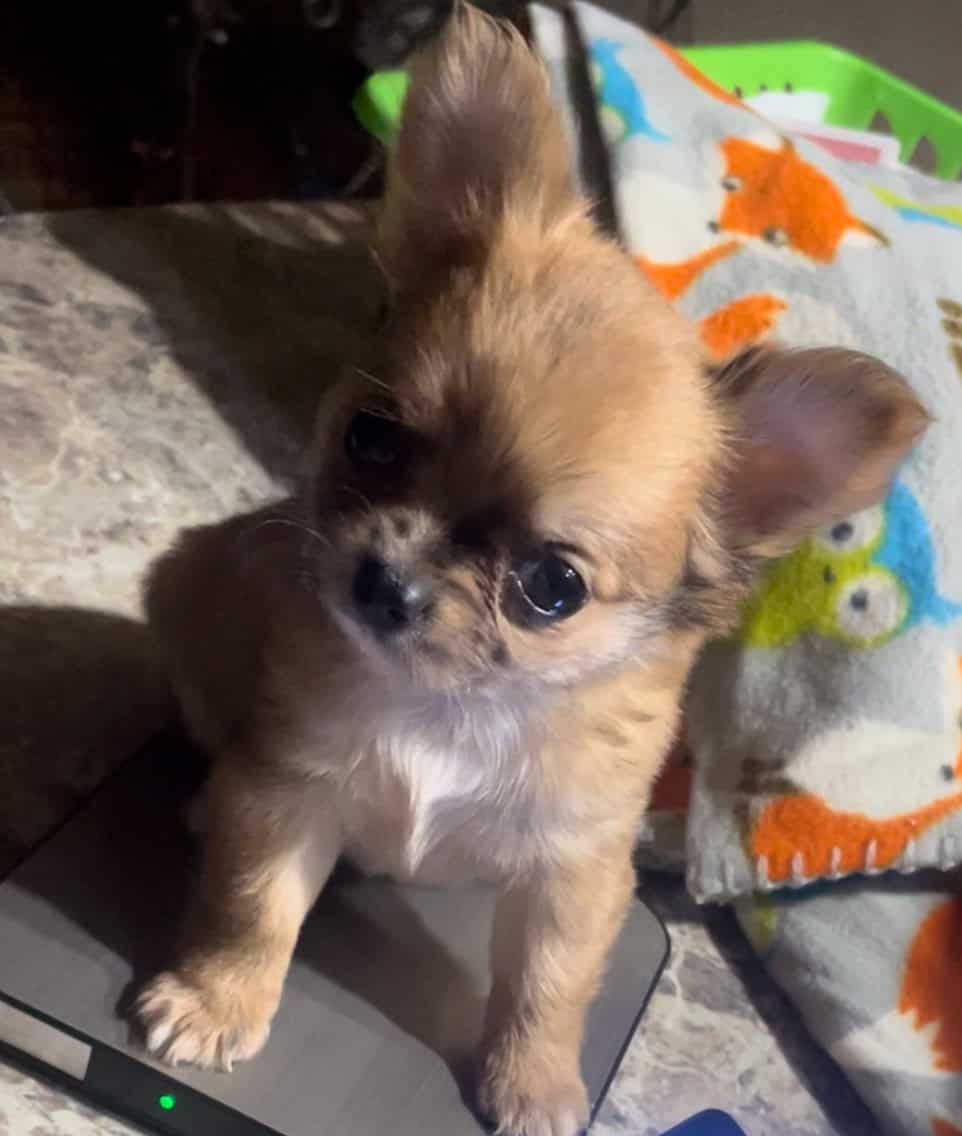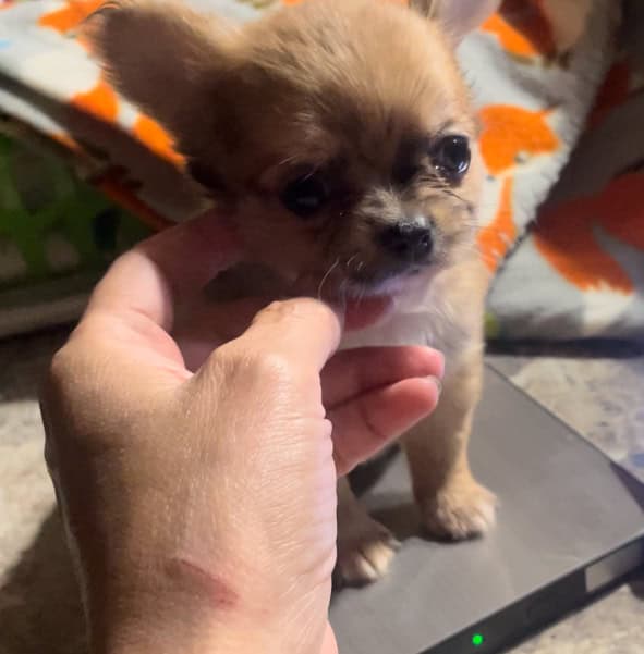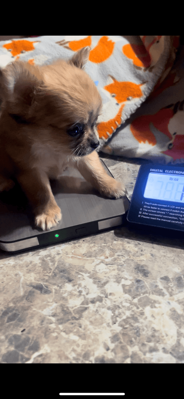 This baby is among the tiniest doll faces we’ve had over 20 years of breeding. She is an outstanding little pup, and will stay very tiny and unbelievably adorable. See pics for size and weight. Text for more information and to find out how to get her.