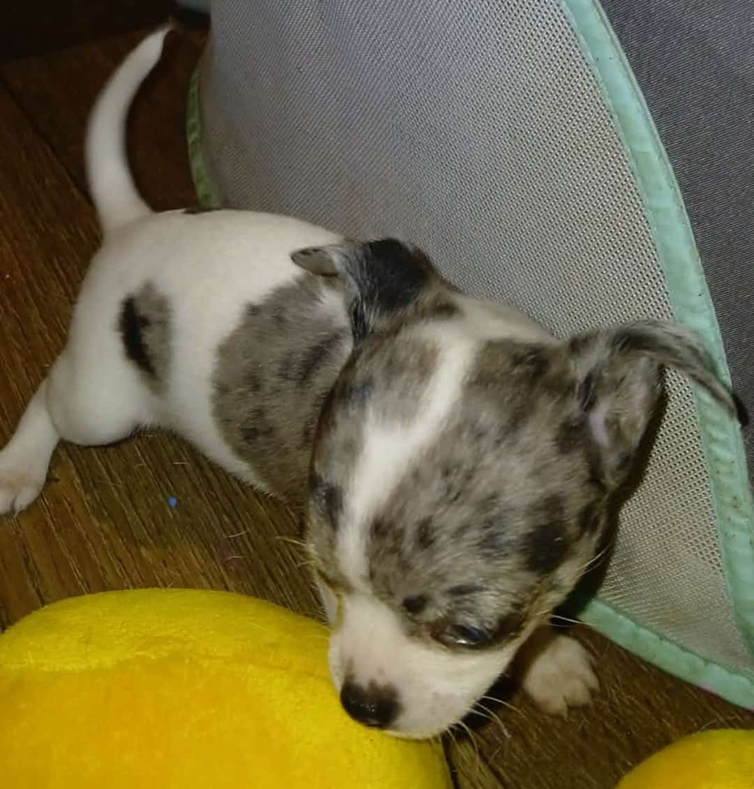 Adorable tiny white with Merle piebald male chihuahua puppy. Will be ready January 23rd. He is $2800 and if you want him held for you, he can be reserved with an $800 deposit. Located in Princeton, Texas.