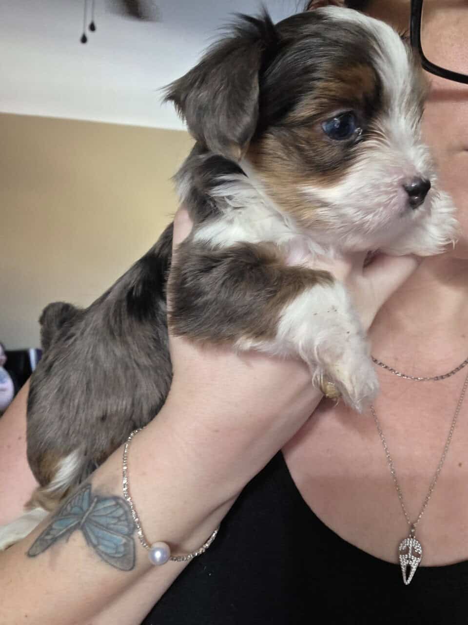 The parti merle male with blue eyes is 2500 and charting 5-7 lbs